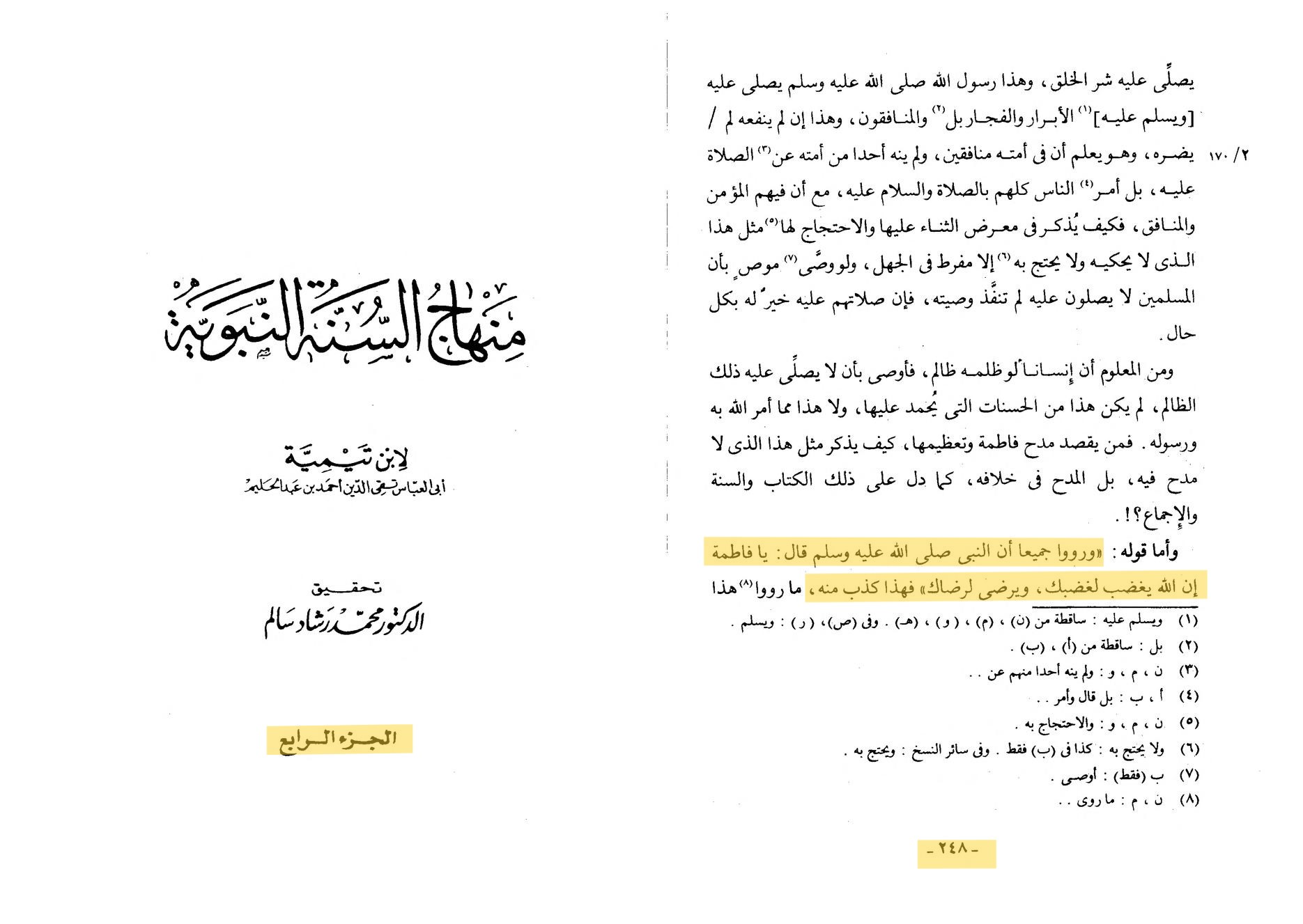 Let us see what the Shaykh al-Islam of the Nawasib, Ibn Taymiyyah al-Harrani said about it :