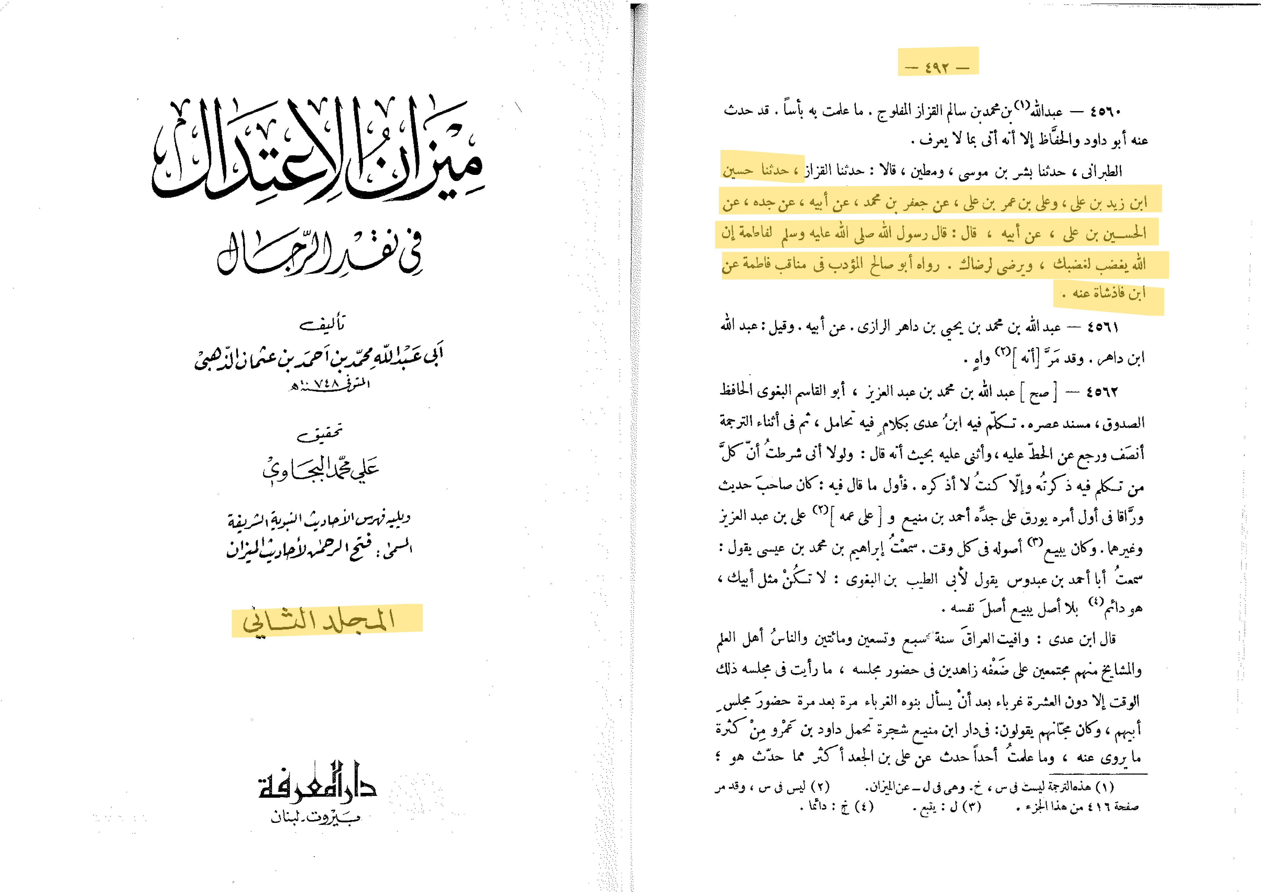 • Even Allamah adh-Dhabhi agreed in Meezan al-Aetidal vol 2:492 that both Husayn ibn Zayd AND Ali ibn Umar narrated it from Imam Ja’far al-Sadiq.
