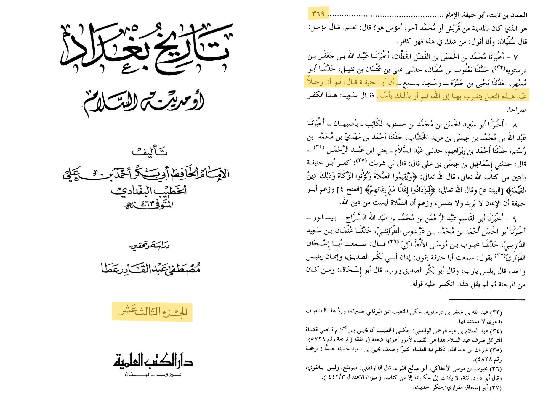 ﺃﻥ ﺃﺑﺎ ﺣﻨﻴﻔﺔ، ﻗﺎﻝ: ﻟﻮ ﺃﻥ ﺭﺟﻼ ﻋﺒﺪ ﻫﺬﻩ اﻟﻨﻌﻞ ﻳﺘﻘﺮﺏ ﺑﻬﺎ ﺇﻟﻰ اﻟﻠﻪ، ﻟﻢ ﺃﺭ ﺑﺬﻟﻚ ﺑﺄﺳﺎ