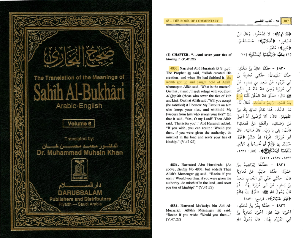 “Allah created His creation, and when He had finished it, the womb, got up and caught hold of Allah by His waist.”