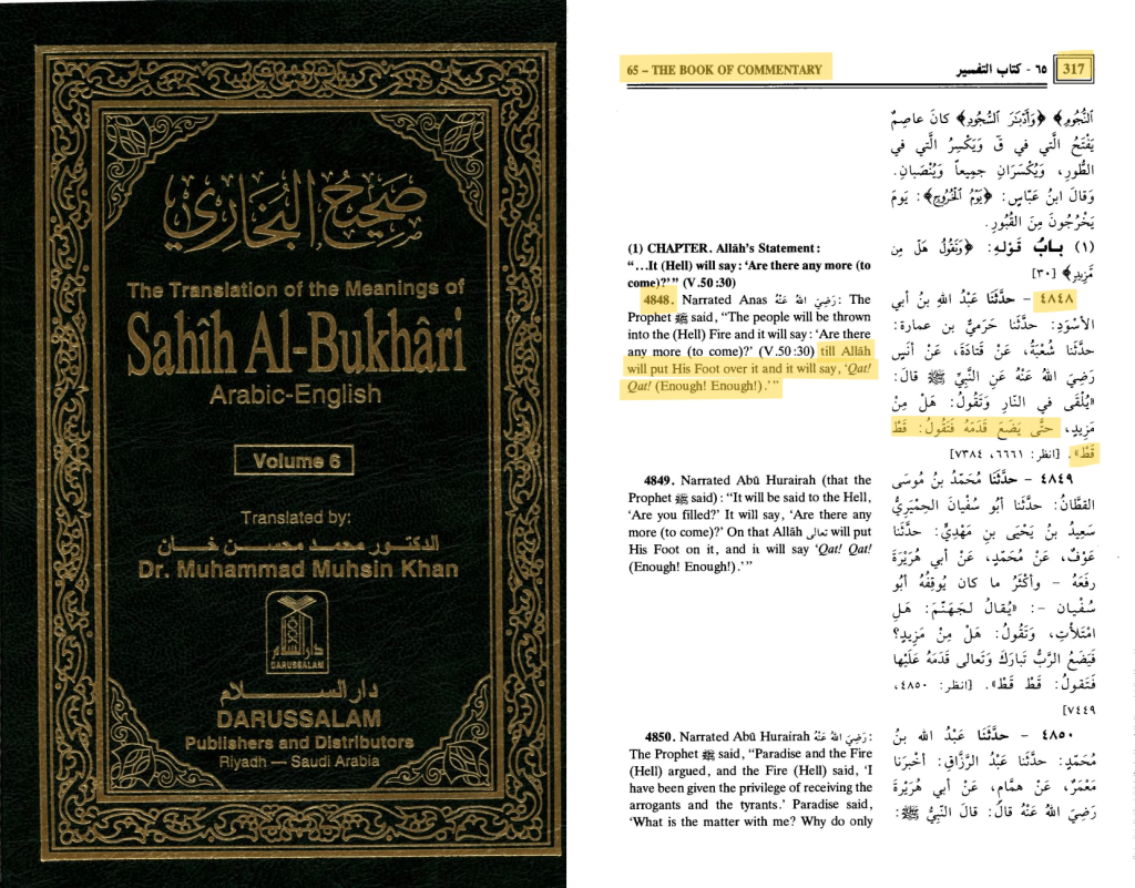 Untill Allah puts His Foot in the hell fire and it will say “Enough Enough”
