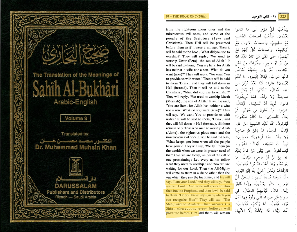So He will ask do you know any sign from which you may recognise your Lord? They will say ‘The shin’ so Allah will reveal His shin and the believers will fall into prostration.