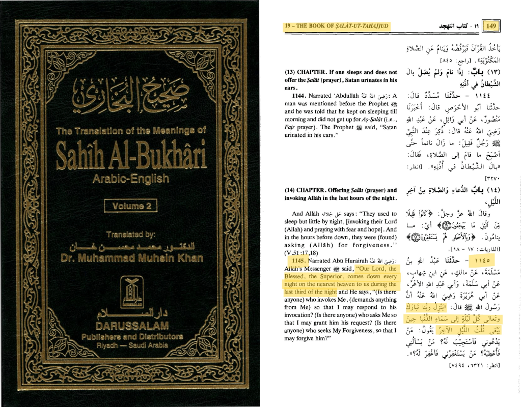 “Our Lord comes down to us every night to the first Heaven when the last third of the night remains.”
