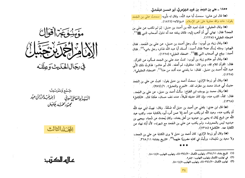 ~Mausuat Aqwal Ahmad Ibn Hanbal fee Rijal Hadith wa Ilal vol 3:34