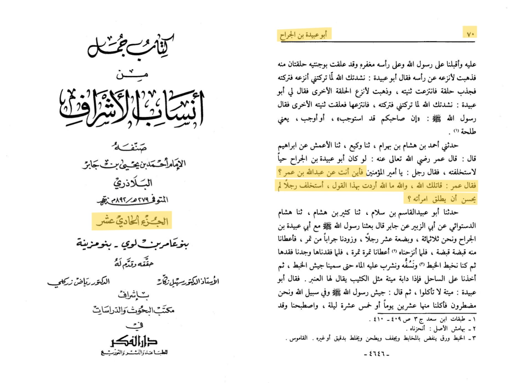 عن ﻭﻛﻴﻊ، ﺛﻨﺎ اﻷﻋﻤﺶ ﻋﻦ ﺇﺑﺮاﻫﻴﻢ ﻗﺎﻝ: ﻗﺎﻝ ﻋﻤﺮ : ﻟﻮ ﻛﺎﻥ ﺃﺑﻮ ﻋﺒﻴﺪﺓ ﺑﻦ اﻟﺠﺮاﺡ ﺣﻴﺎ ﻻﺳﺘﺨﻠﻔﺘﻪ، ﻓﻘﺎﻝ ﺭﺟﻞ: ﻳﺎ ﺃﻣﻴﺮ اﻟﻤﺆﻣﻨﻴﻦ ﻓﺄﻳﻦ ﺃﻥﺗ ﻋﻦ ﻋﺒﺪ اﻟﻠﻪ ﺑﻦ ﻋﻤﺮ؟