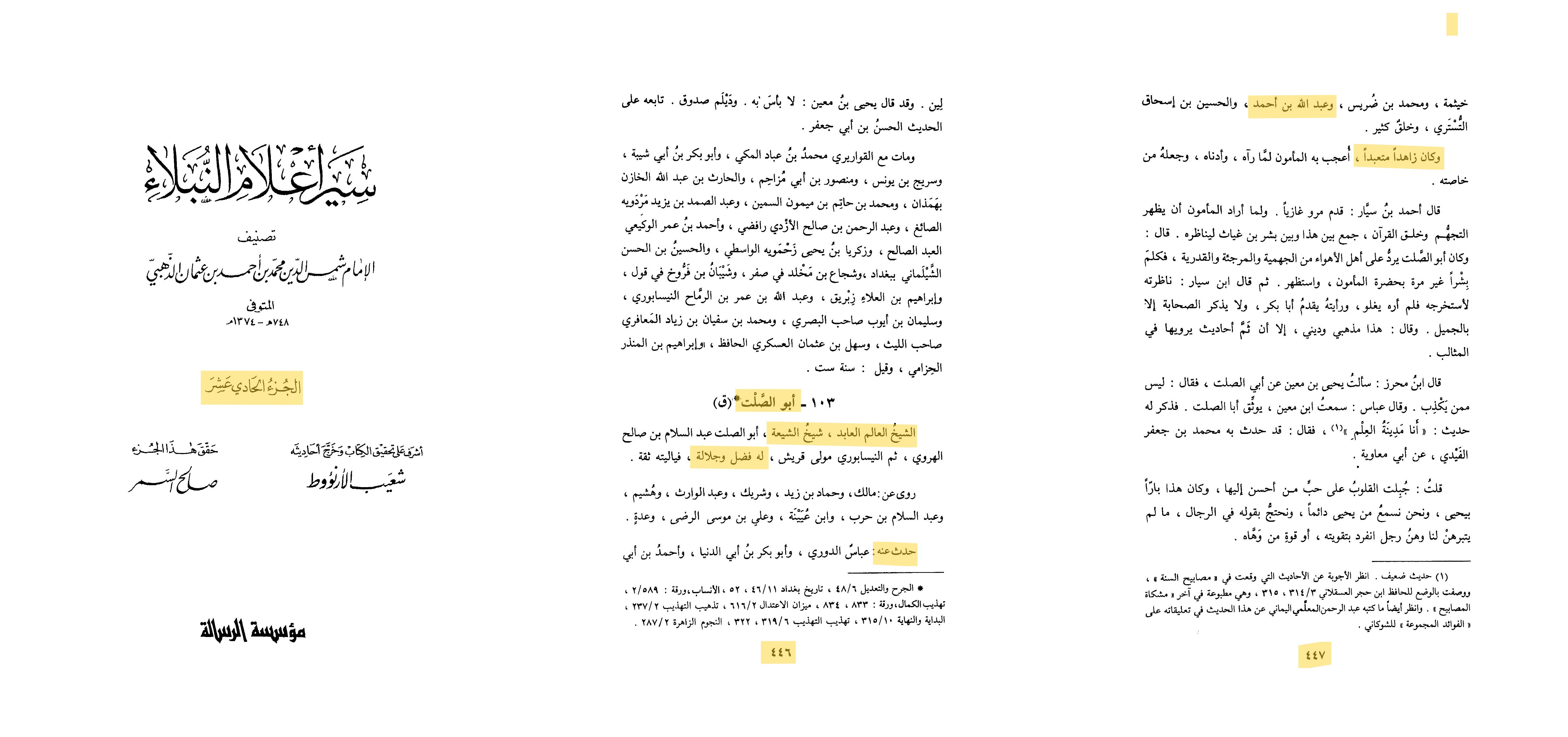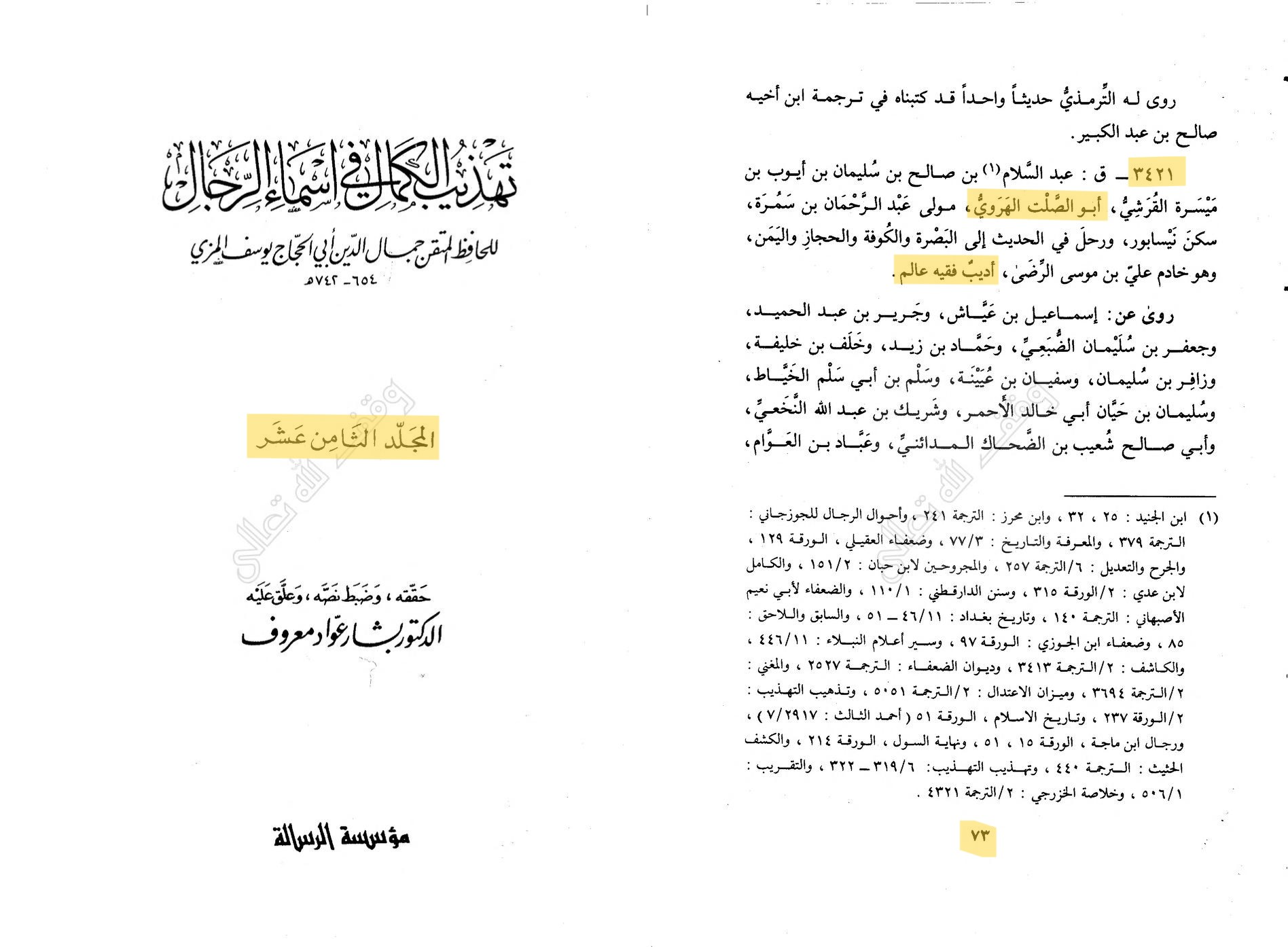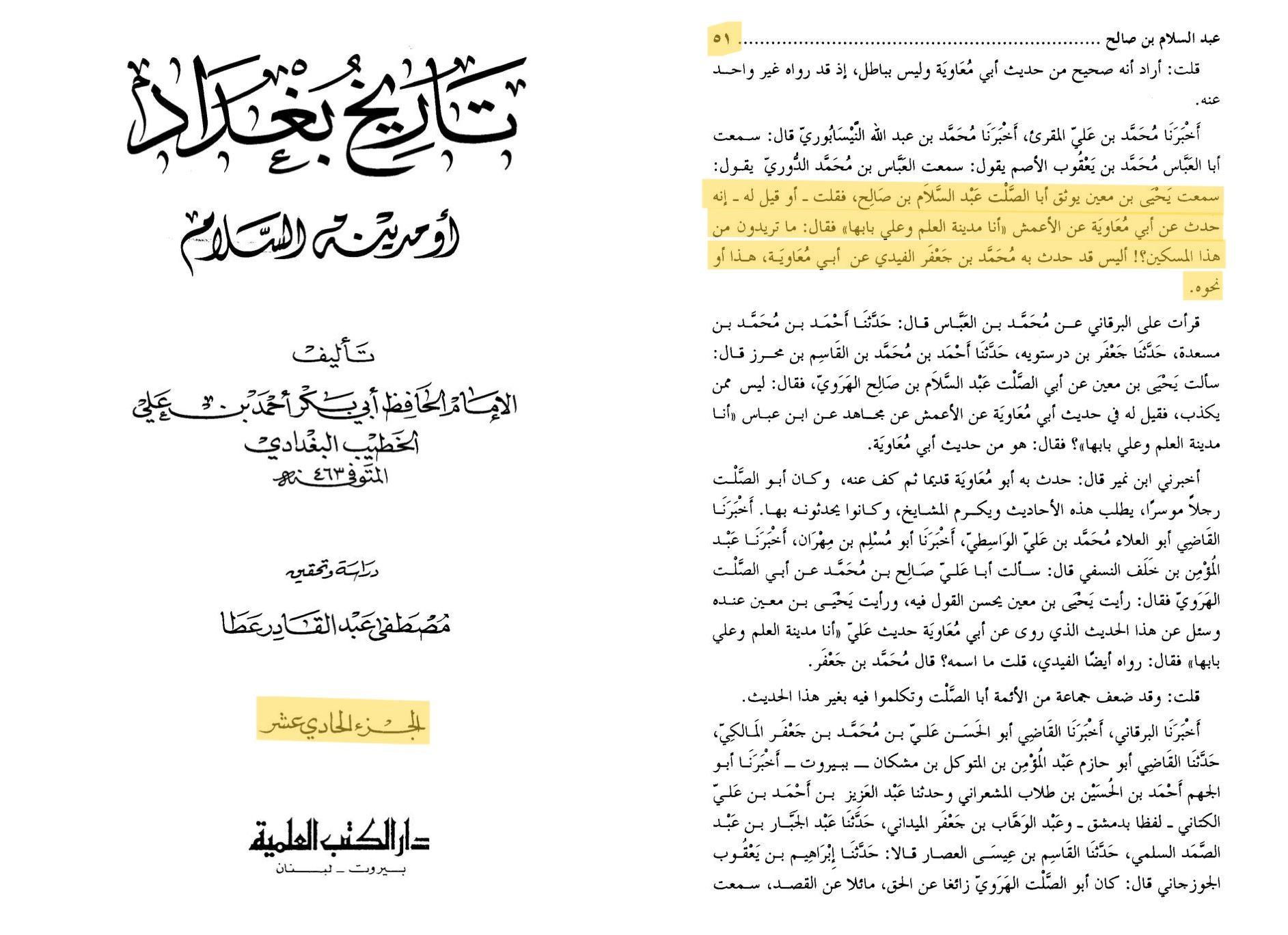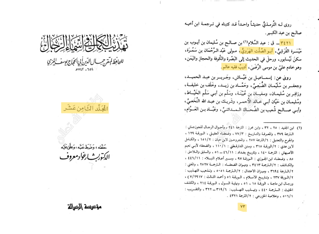 Reported by al-Burqani that Da’laj told me that he heard Abu Sa’ad al-Harrawi and he was asked : What do you say about Abd al-Salam ibn Salih (Abu al-Salt)? He replied Na’eem ibn al-Haysam said ‘He is trustworthy.’