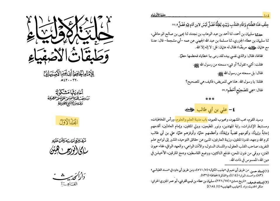 5) Abu Nu’aym al-Isfahani writes under the introduction of Imam Ali Ibn Abi Talib that He is the gate of the city of knowledge