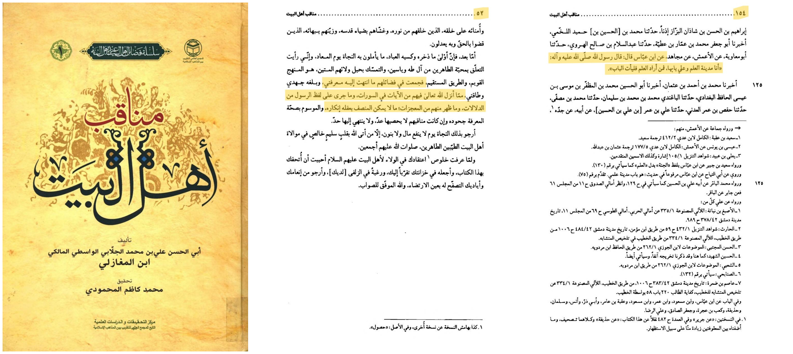 ﻓﻬﺬﻩ ﺃﺣﺎﺩﻳﺚ ﻣﺴﻨﺪﺓ ﻣﻤﺎ ﺗﻮاﺗﺮ ﻭﺻﺢ ﻭﺣﺴﻦ ﻣﻦ ﺃﺳﻨﻰ ﻣﻨﺎﻗﺐ…. ﺃﻣﻴﺮ اﻟﻤﺆﻣﻨﻴﻦ ﺃﺑﻲ اﻟﺤﺴﻦ ﻋﻠﻲ ﺑﻦ ﺃﺑﻲ ﻃﺎﻟﺐ