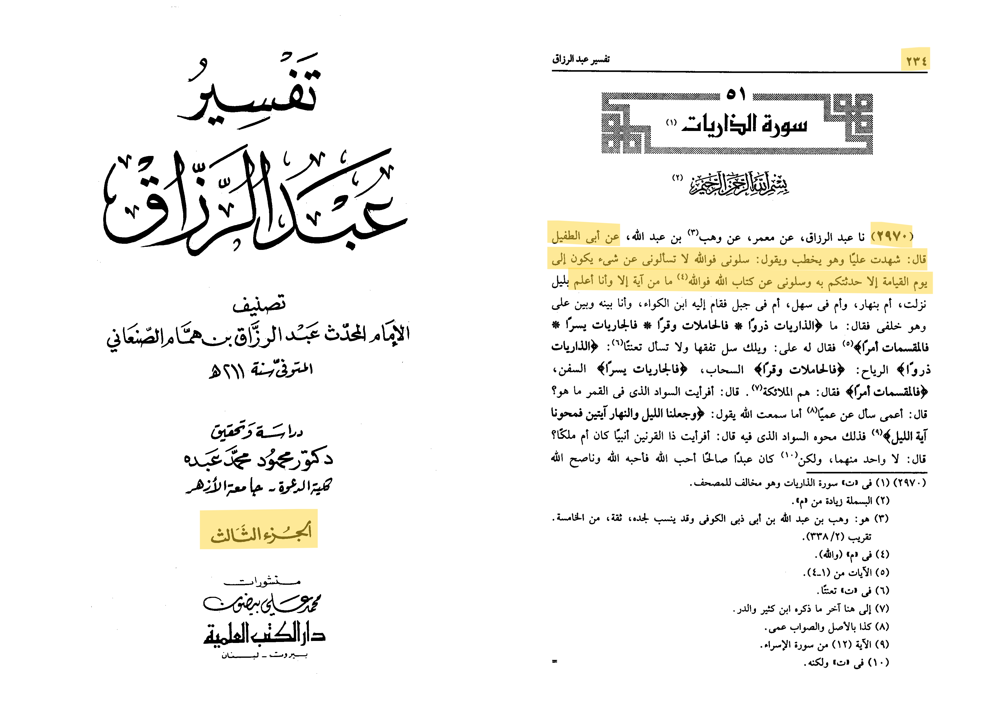 2) Imam Abd al-Razzaq al-Sinani narrated :