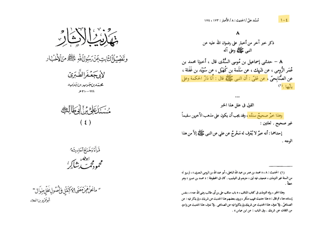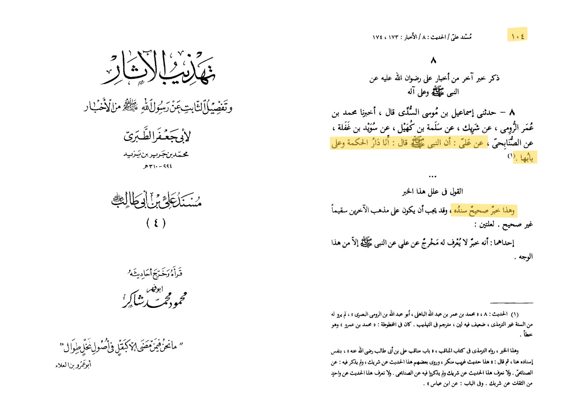 ~Tahdheeb al-Athar, Musnad Ali page 104