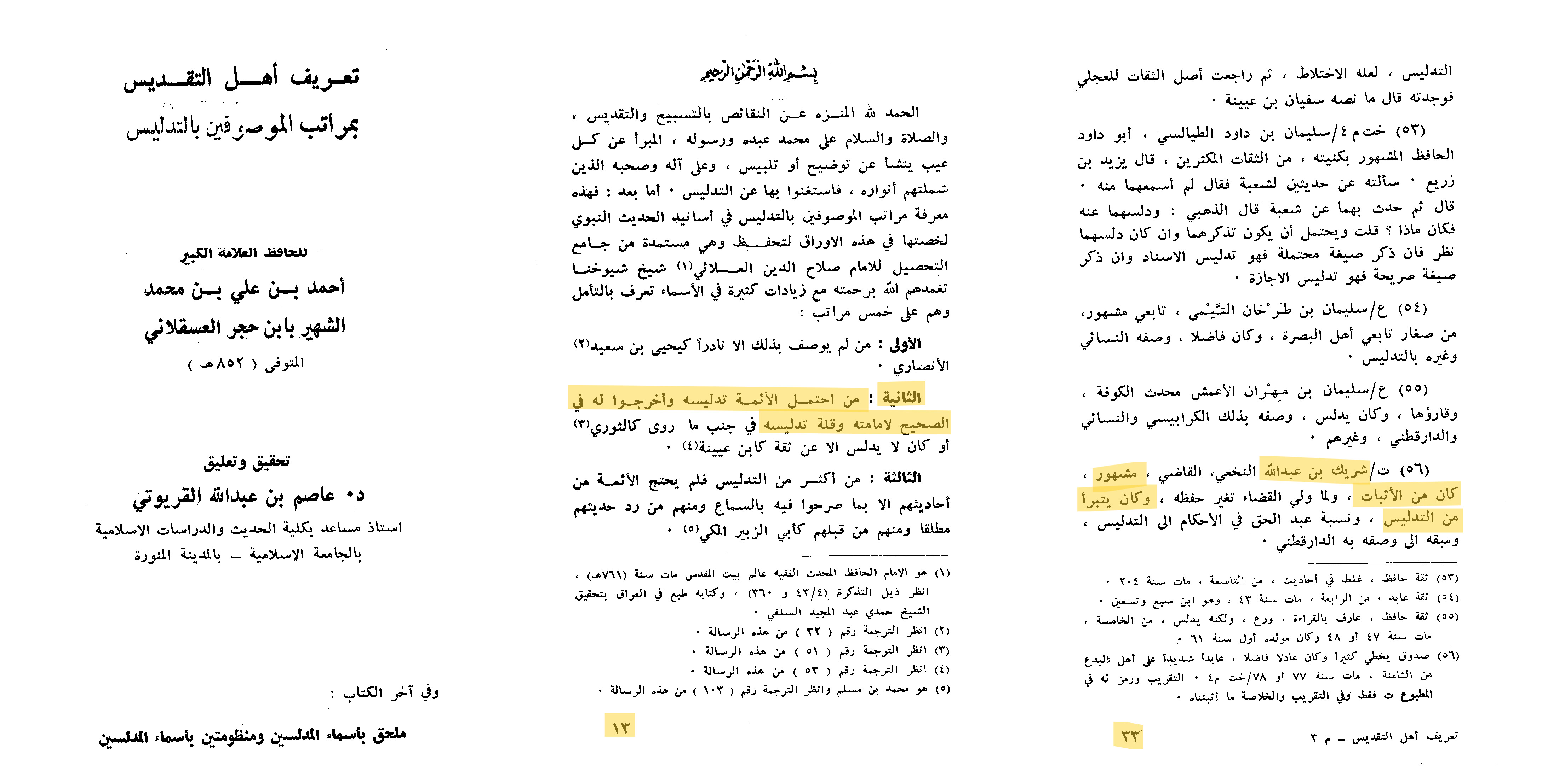 And the second category in this book are those narrators to whom Tadlis was ascribed but their narrations are ACCEPTED because they would do very less tadlis.
