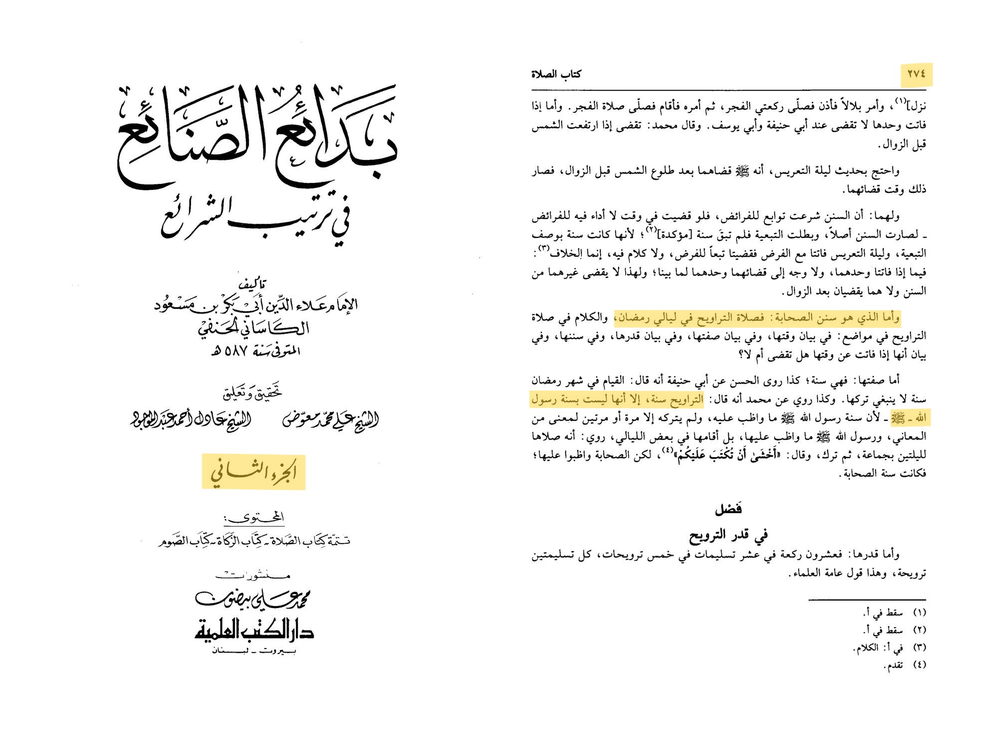 ~Bada’i al-Sana’i fee Tartib ash-Shara’i vol 2:274