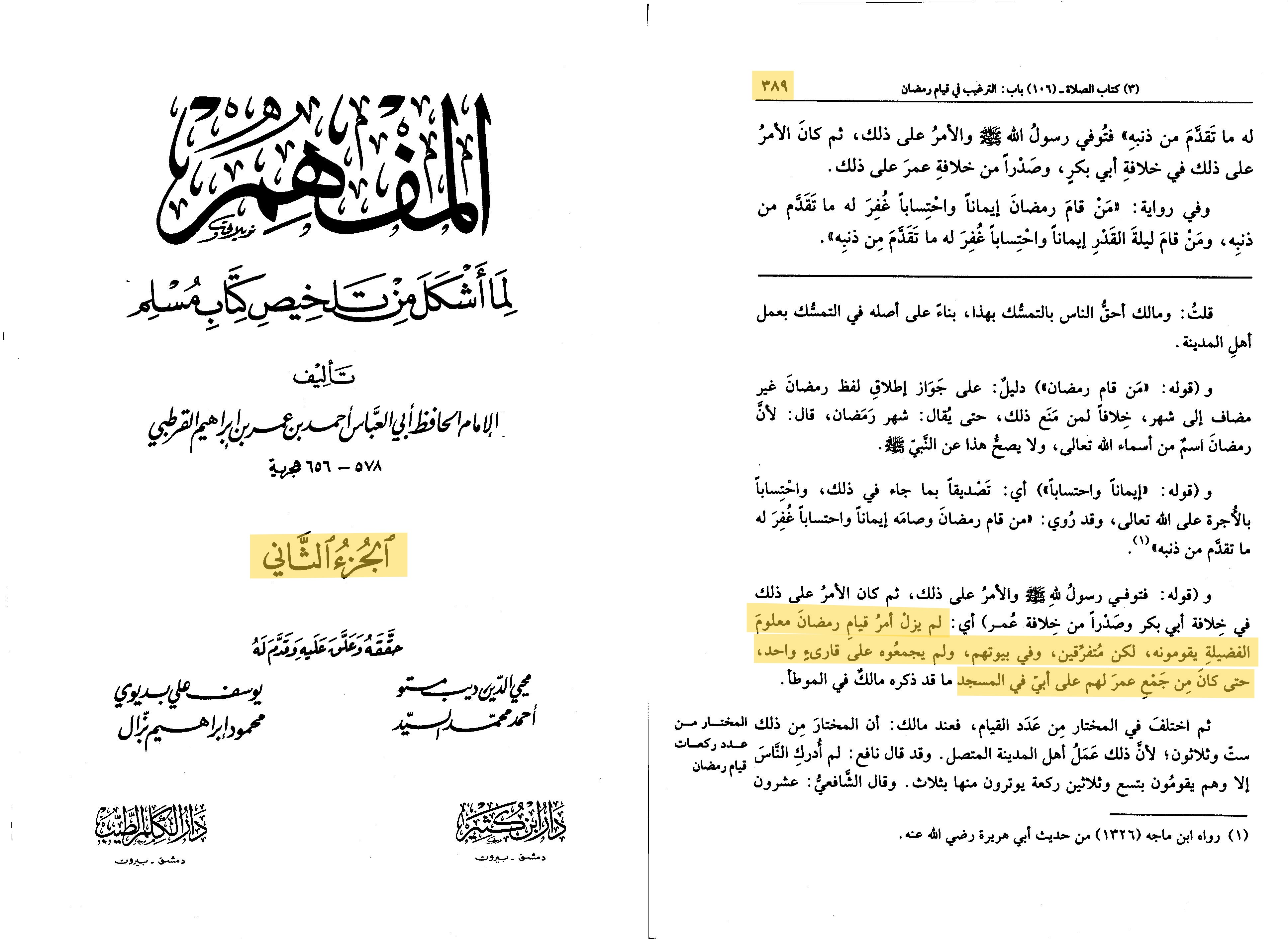 ~al-Mufhim lima Ishkal min Talkhis Kitab Muslim vol 2:389