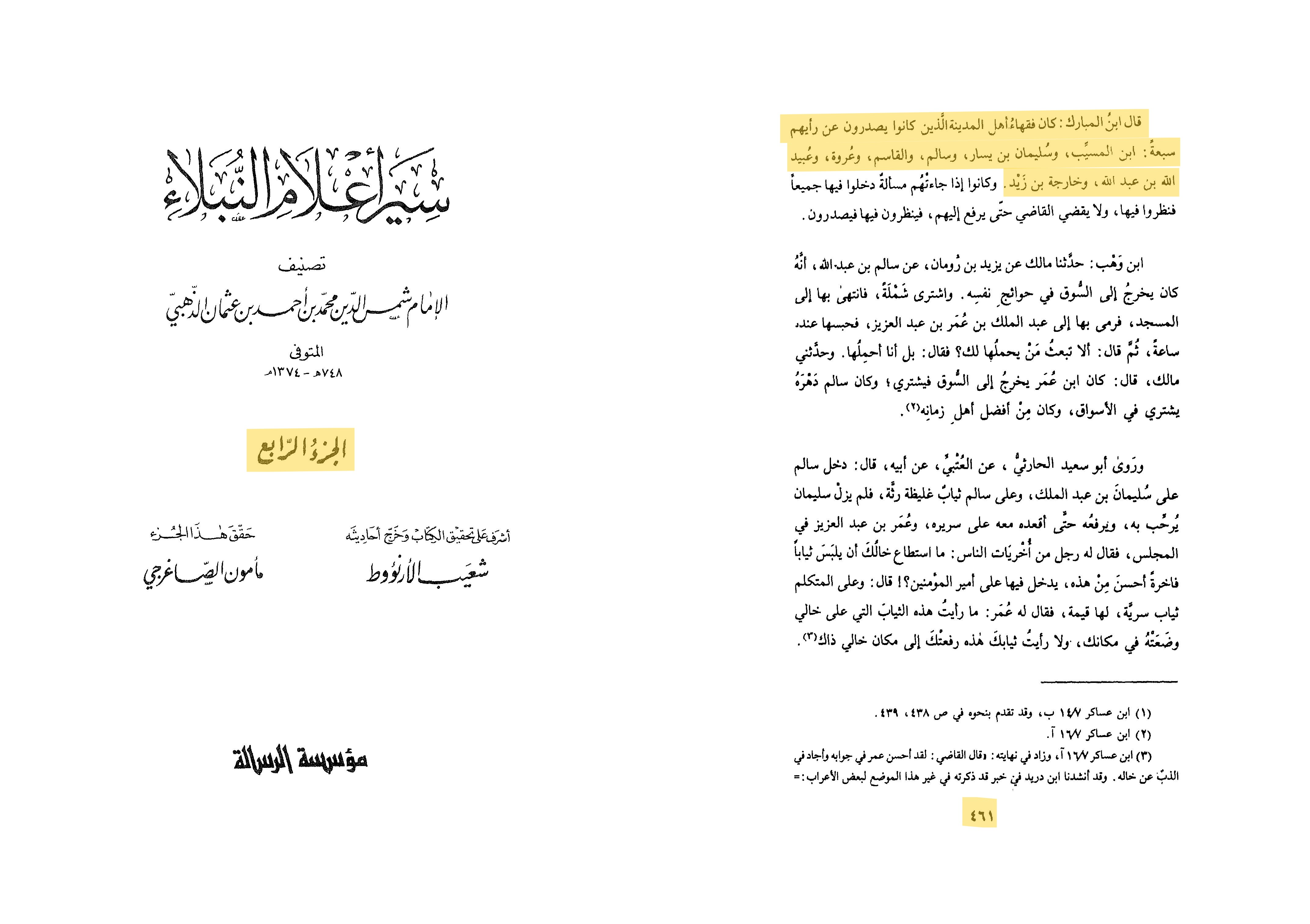 Abd-Allah Ibn al-Mubarak said : The Fuqaha of Medina are seven – Sa’eed Ibn al-Musayyib, Sulayman Ibn Yasar, Salim Ibn Abd-Allah, al-Qasim Ibn Muhammad, Urwah Ibn al-Zubayr, Ubayd-Allah Ibn Abd-Allah and Kharijah Ibn Zayd