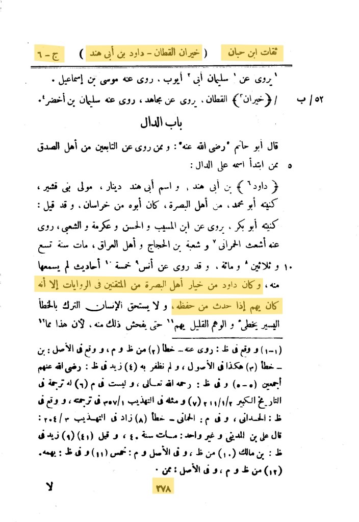 ﺩاﻭﺩ ﻣﻦ ﺧﻴﺎﺭ ﺃﻫﻞ اﻟﺒﺼﺮﺓ ﻣﻦ اﻟﻤﺘﻘﻨﻴﻦ ﻓﻲ اﻟﺮﻭاﻳﺎﺕ ﺇﻻ ﺇﻧﻪ ﻛﺎﻥ ﻳﻬﻢ ﺇﺫا ﺣﺪﺙ ﻣﻦ ﺣﻔﻈﻪ