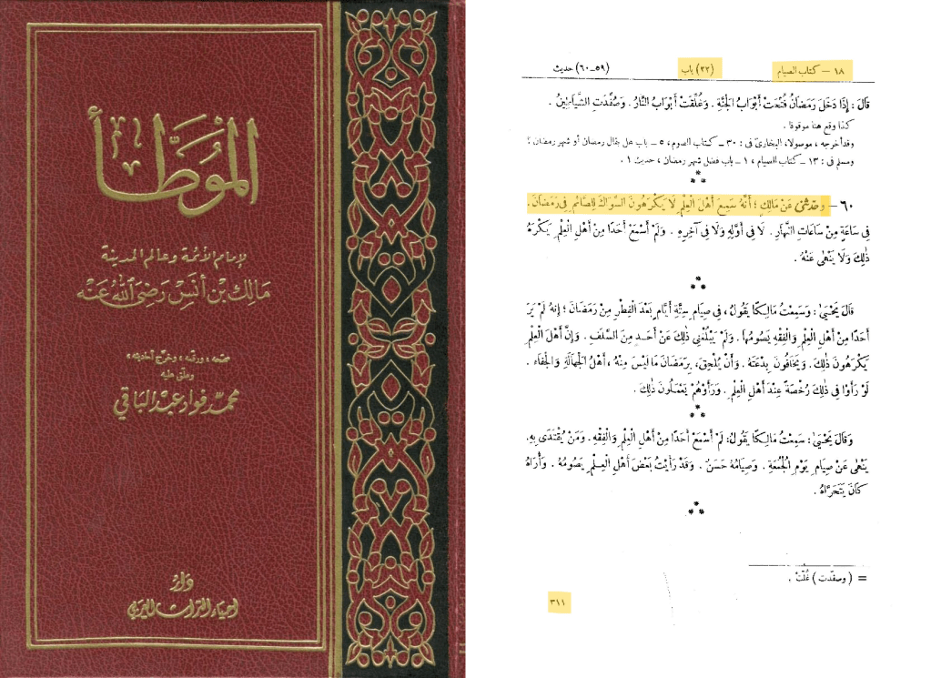 ﻋﻦ ﻣﺎﻟﻚ ﺃﻧﻪ ﺳﻤﻊ ﺃﻫﻞ اﻟﻌﻠﻢ ﻻ ﻳﻜﺮﻫﻮﻥ السواك ﻟﻠﺼﺎﺋﻢ ﻓﻲ ﺭﻣﻀﺎﻥ