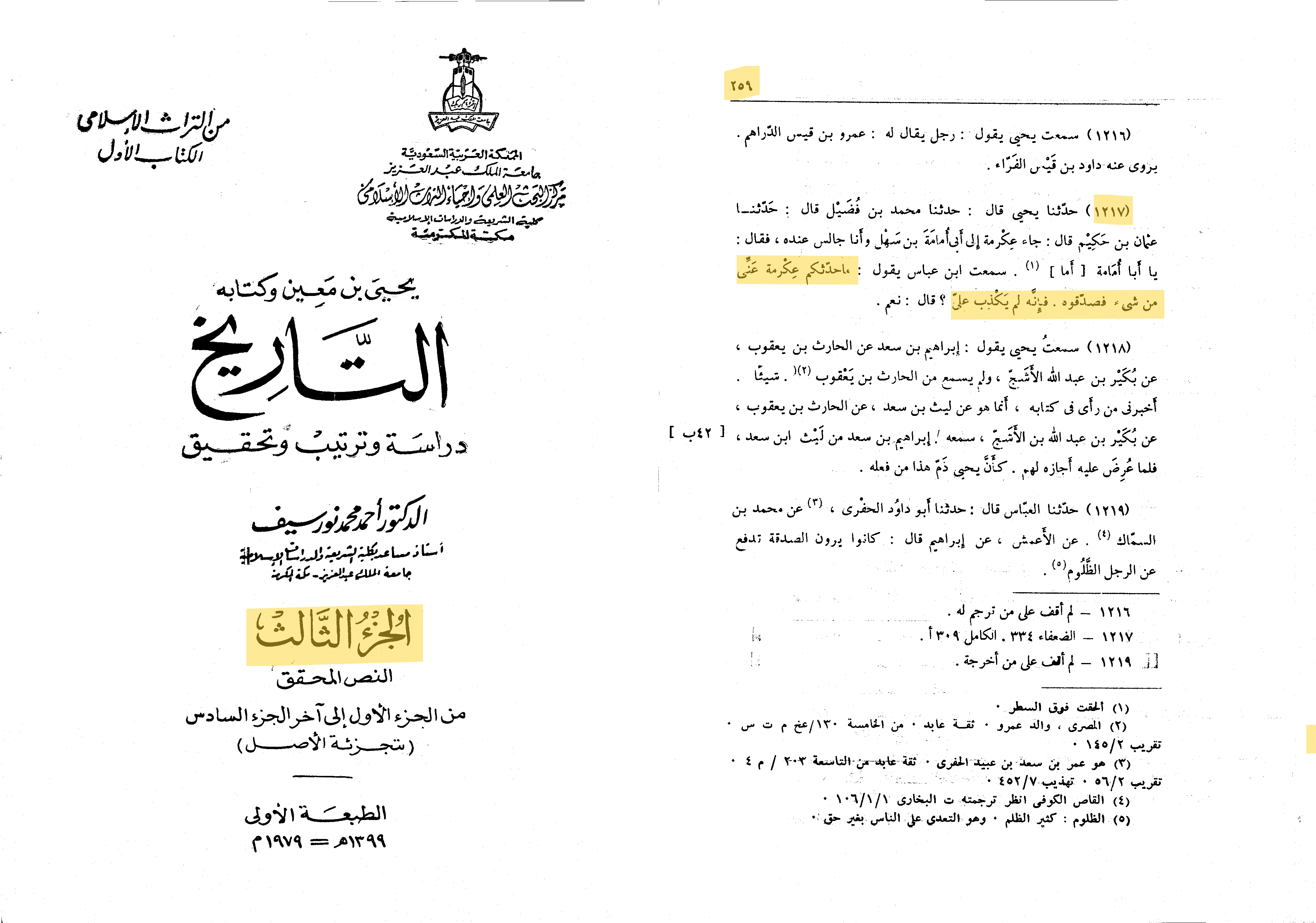 ~Taarikh Ibn Ma’in Riwayah al-Dawri vol 3:259