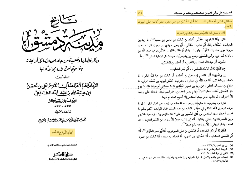 al-Zuhri said : ‘No stones were turned in Syria, the day when al-Husayn Ibn Ali was killed except it had blood gushing out.’