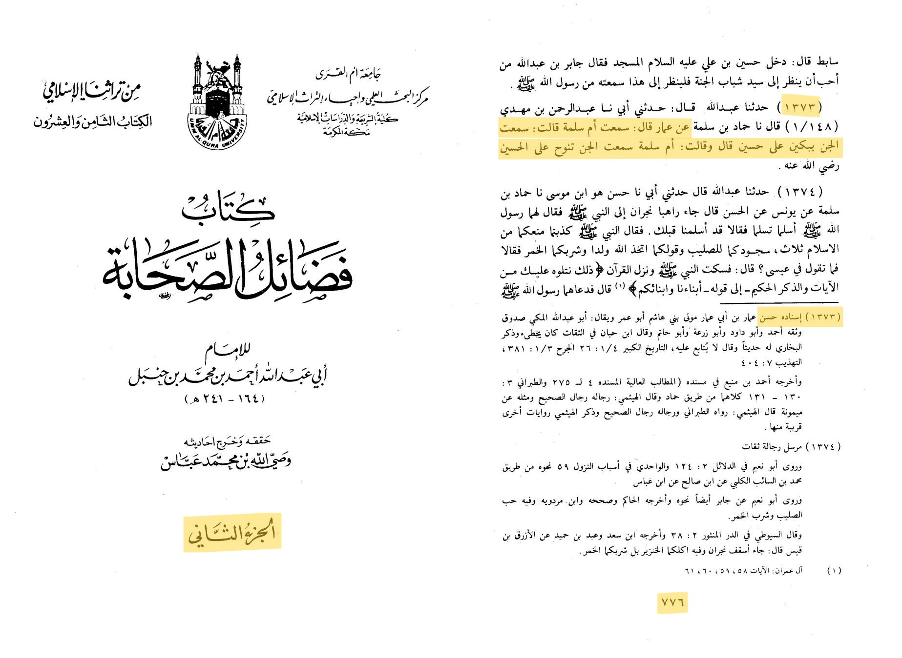 ~Fadhail al-Sahabah 1154, Ahmad Ibn Hanbal