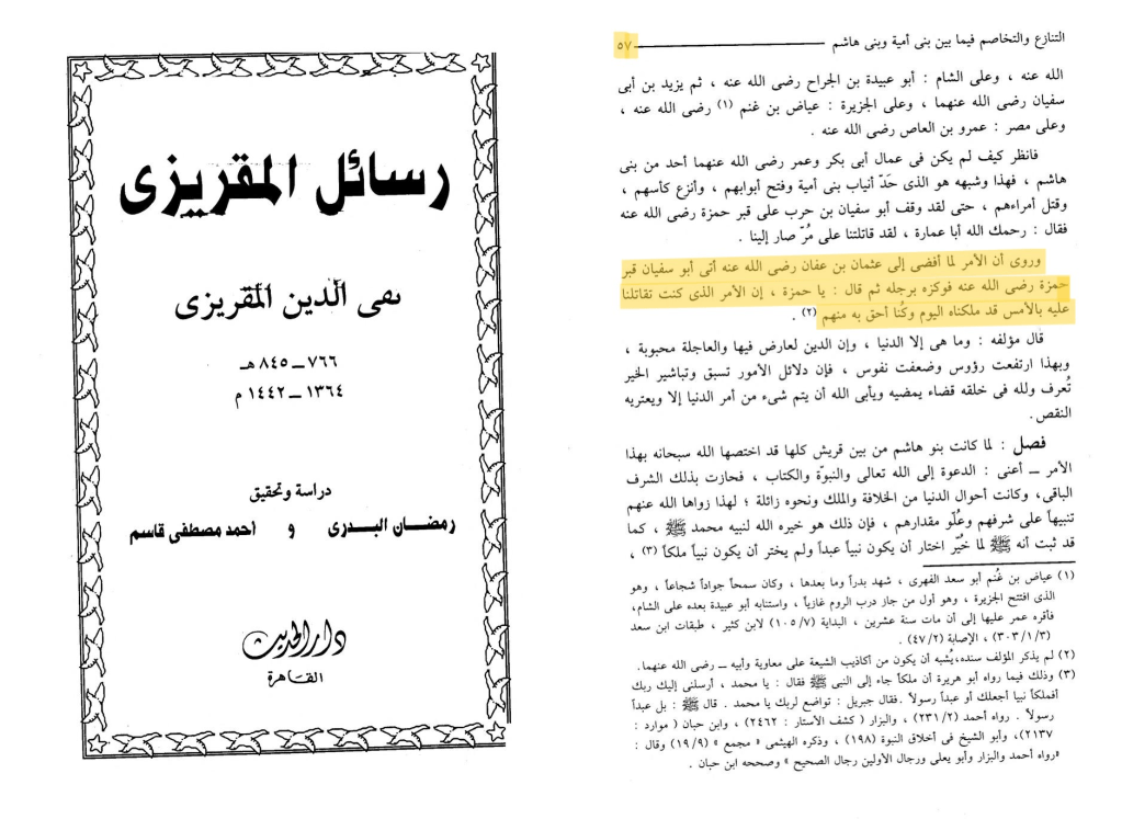 ‘O Hamza, the matter over which you fought us yesterday, It has become our possession and we are more deserving of it than they (Bani Hashim) are.