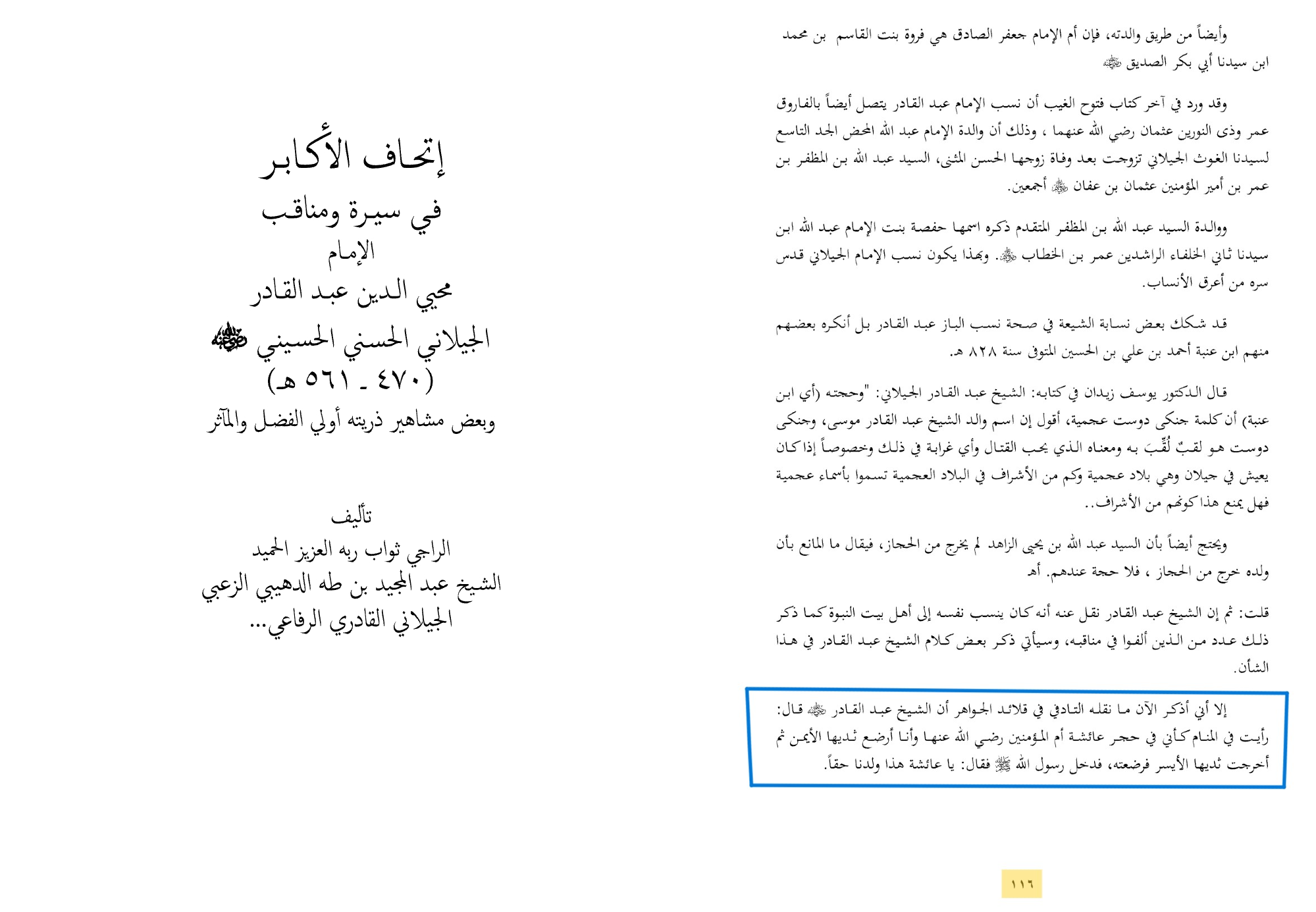 ~Ithaf al-Akbar fee Seerat wa Manaqib Abd al-Qadir al-Jilani page 116, Published : DKI