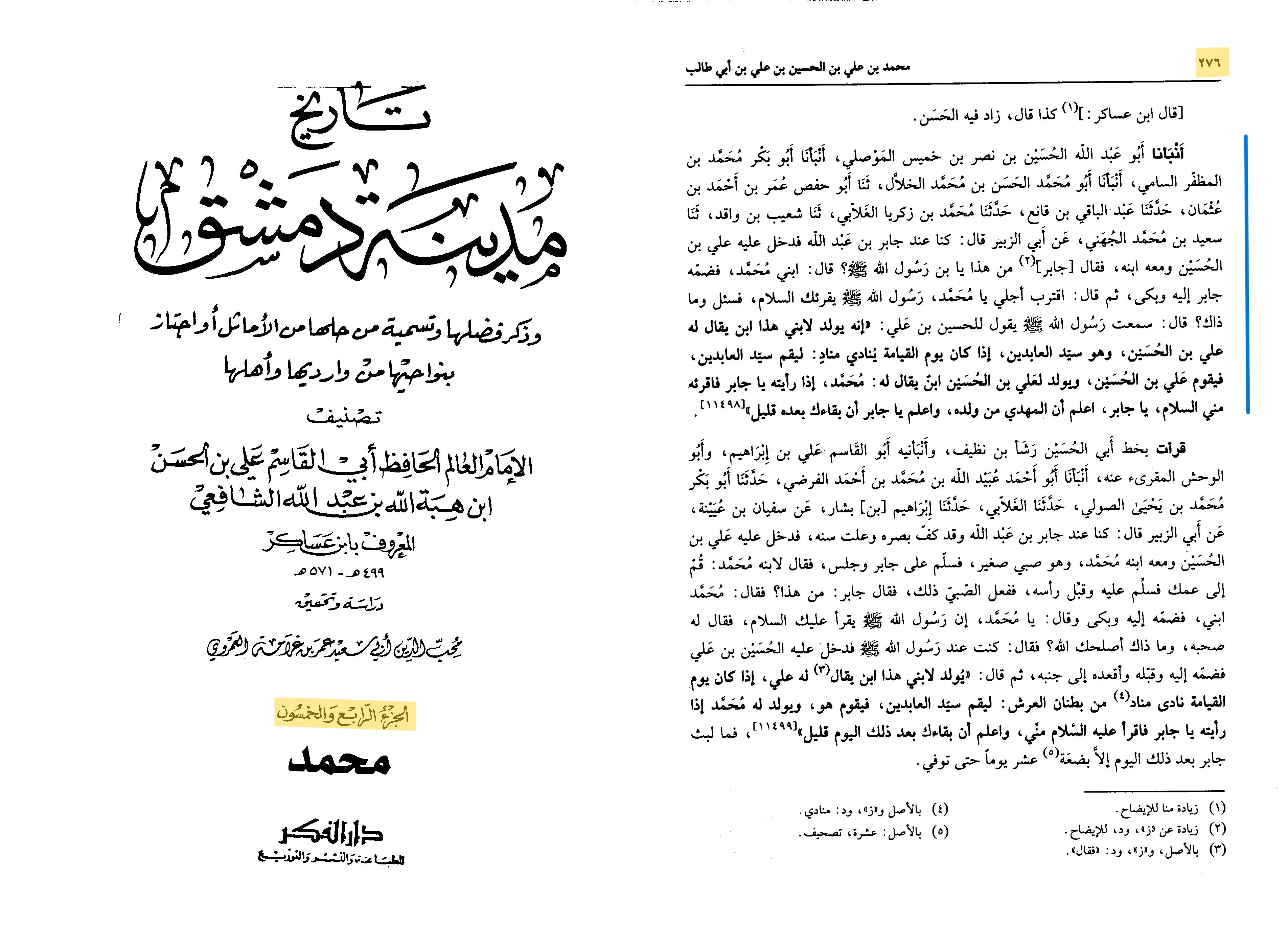 4) Hafidh Ibn Asakir mentioned :