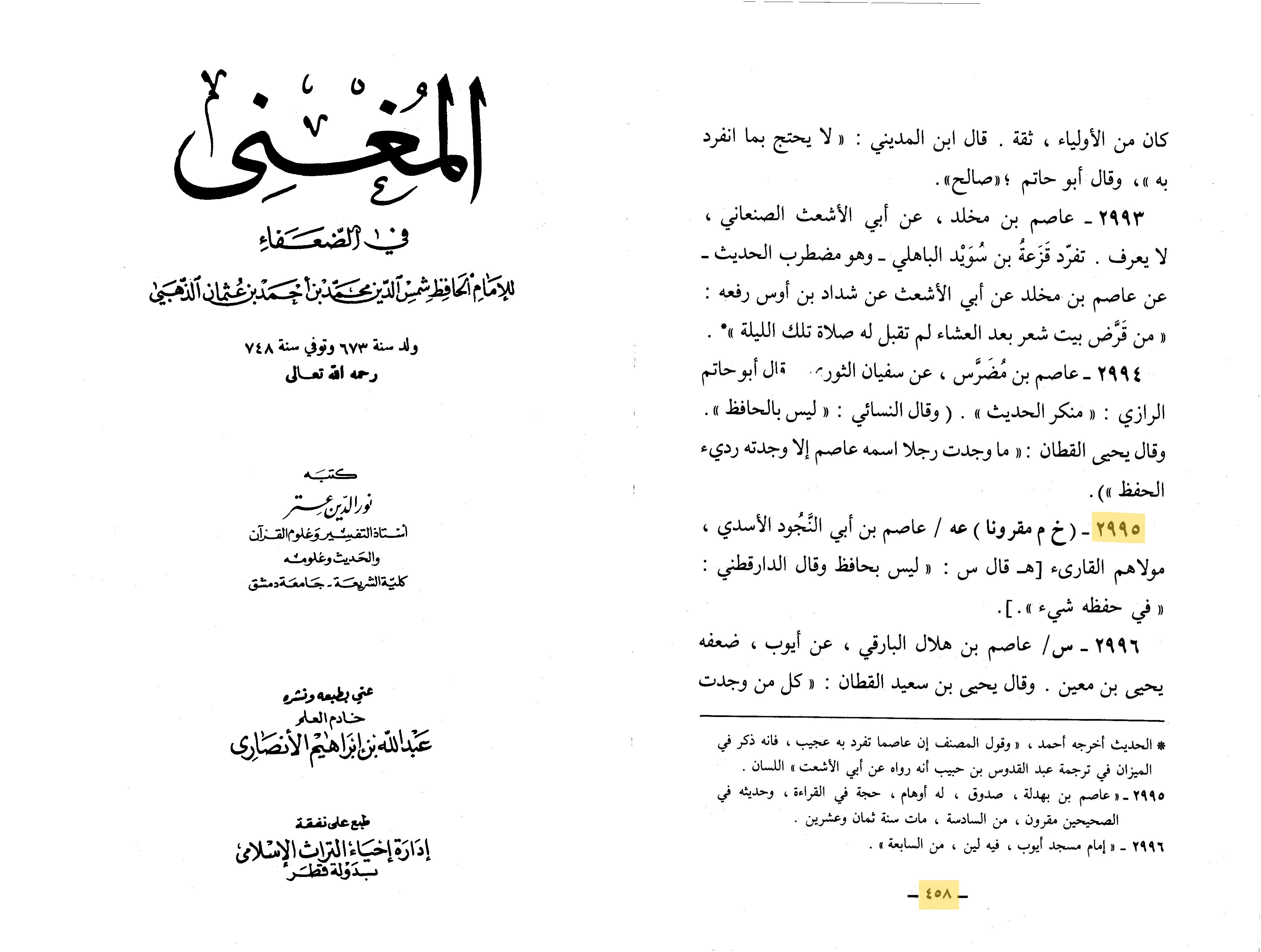 ~al-Mughni fee al-Du’afa vol 1:458
