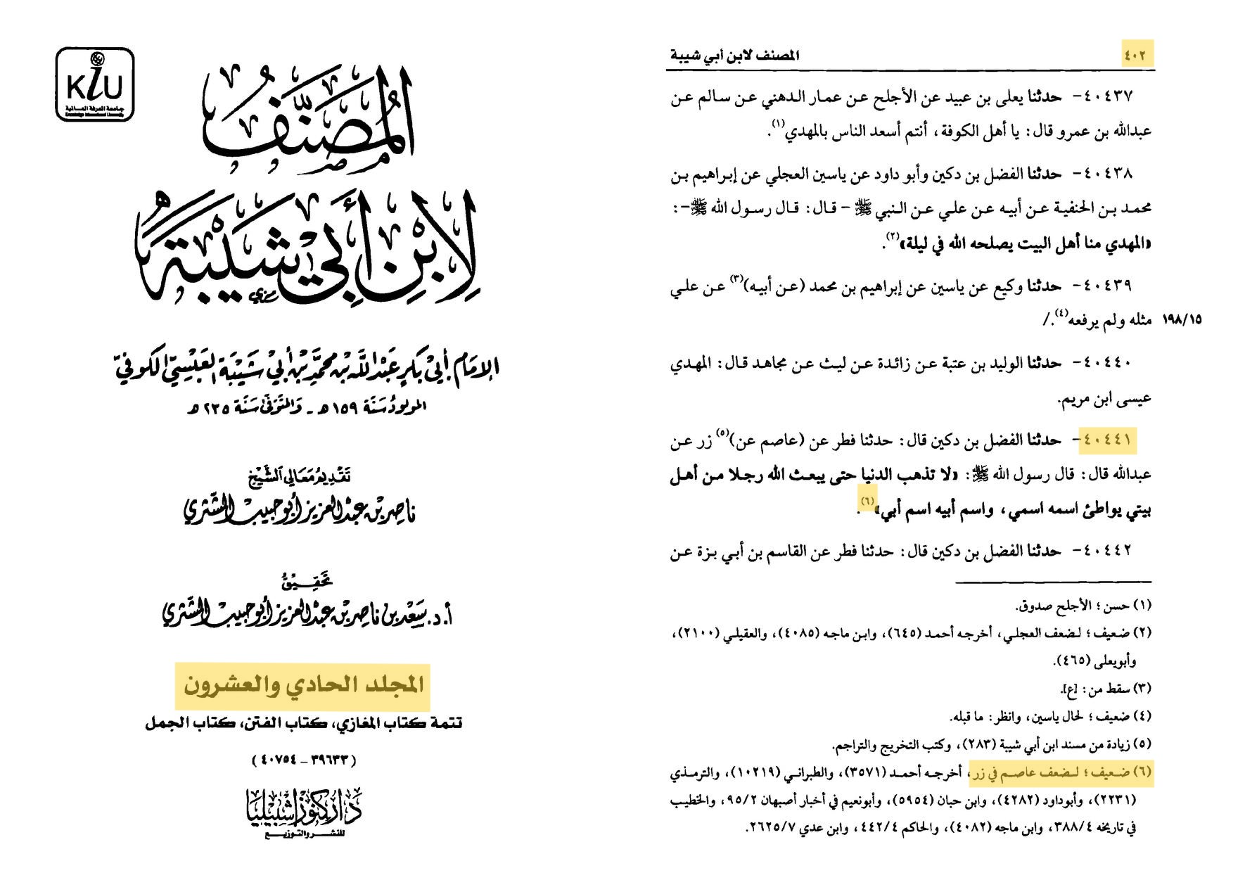 ~Musannaf Ibn Abi Shaybah vol 21:402