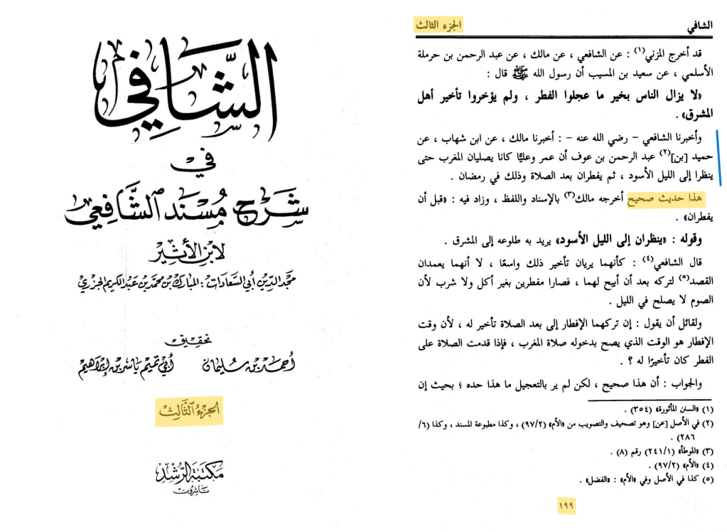 ~al-Shafi fee Sharh Musnad al-Shafi’i vol 3:199