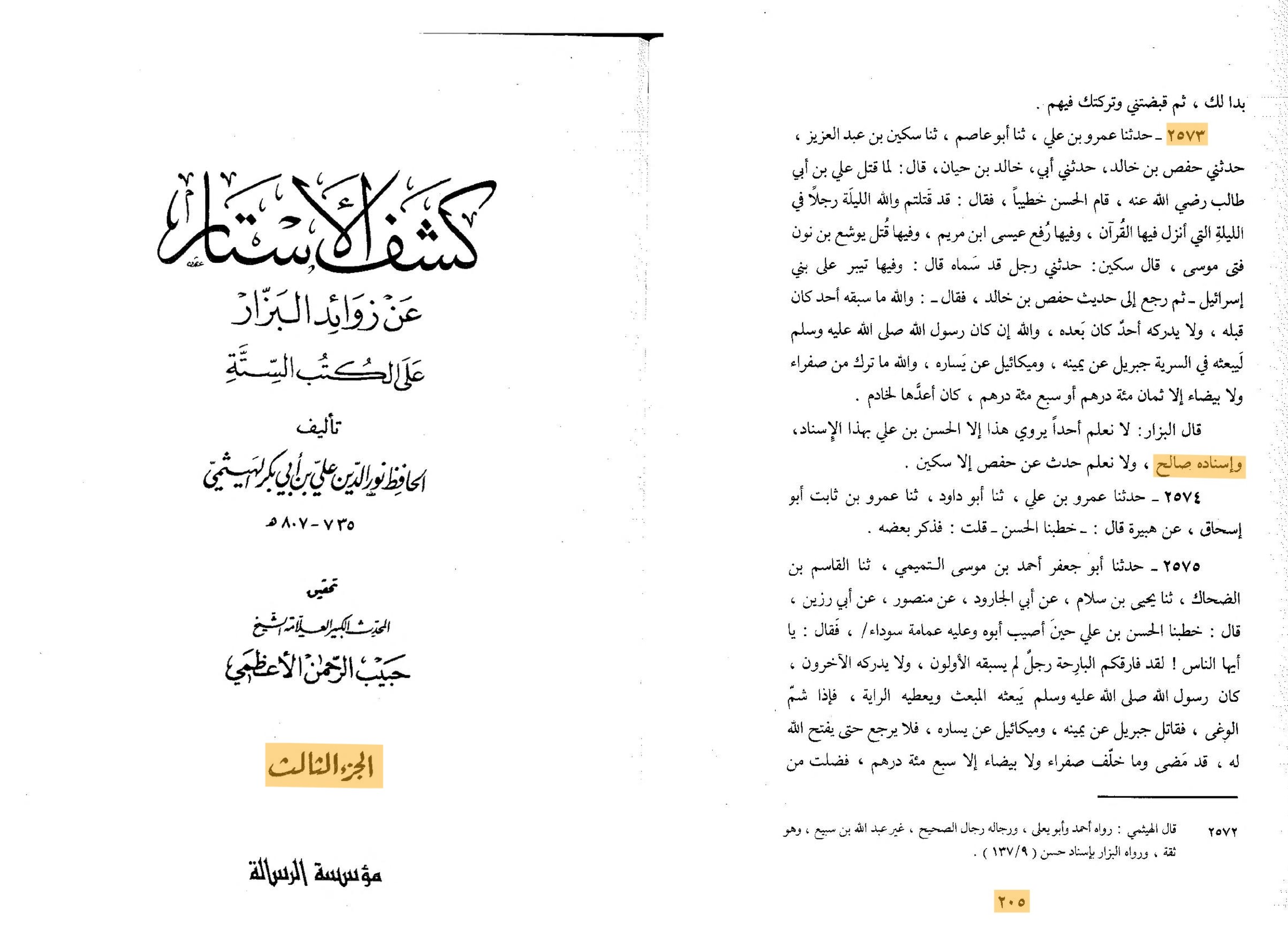 ~Kashf al-Astar aan Zawa’id al-Bazaar vol 3:205