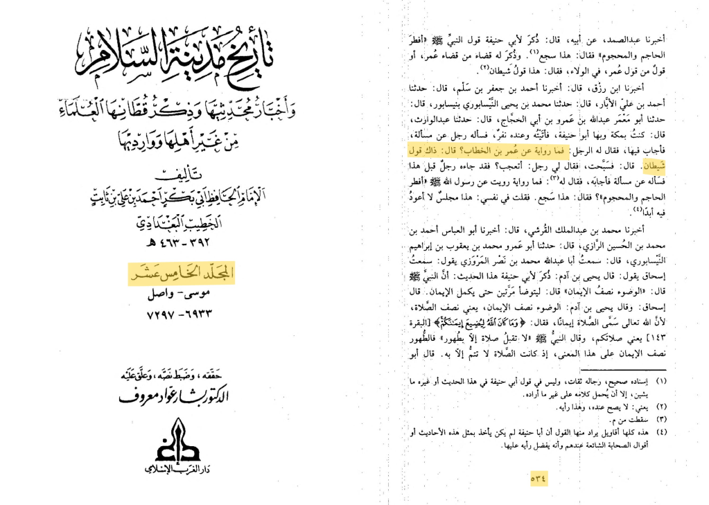 4) The saying of Umar is the saying of Satan; al-Khatib al-Baghdadi narrated :