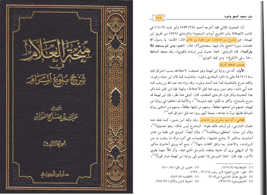 Mishrah Ibn Ha’an reported some isolated and problematic narrations from Uqbah ibn Amir. Therefore, the correct methodology is to remove the reports that he narrates alone and accept only those that are supported by other reliable narrators.