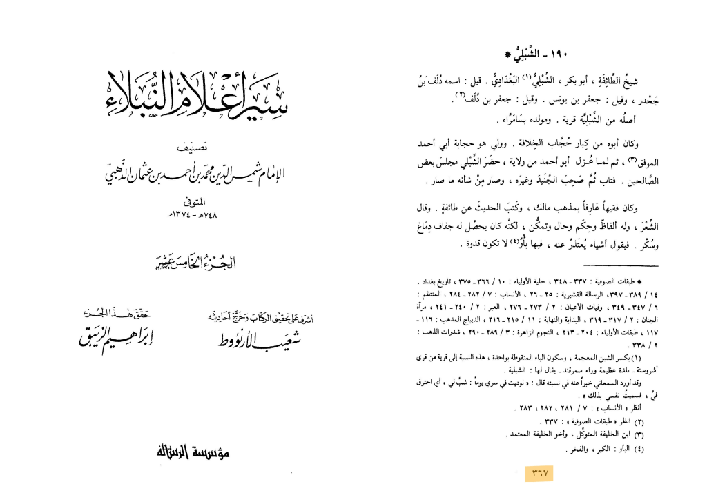 الشبلي أبو بكر البغدادي وكان فقيها عارفا بمذهب مالك، وكتب الحديث عن طائفة. وقال الشعر، وله ألفاظ وحكم وحال وتمكن