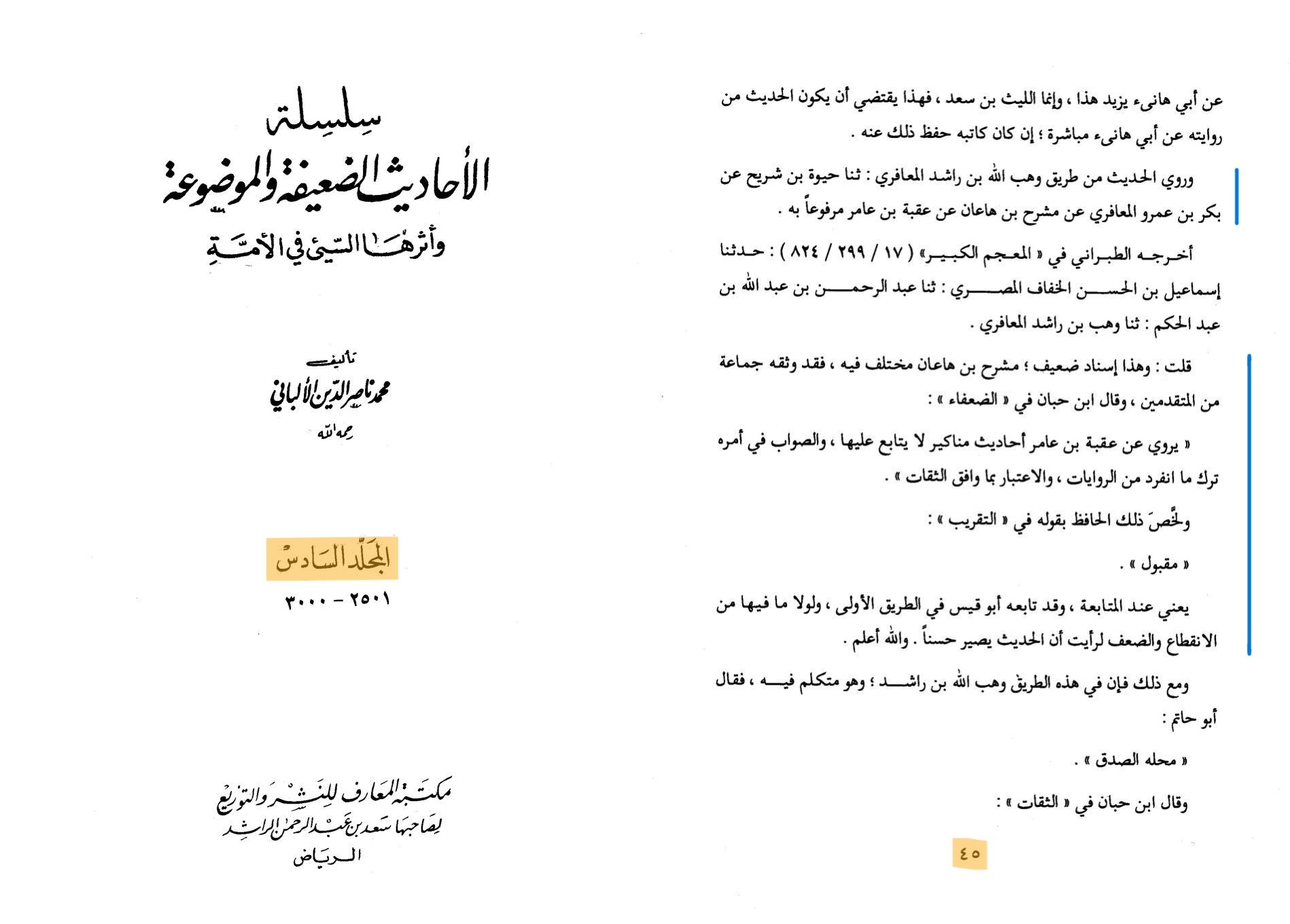 ~Silsilah al-Ahadith al-Da’eefa vol 6:45