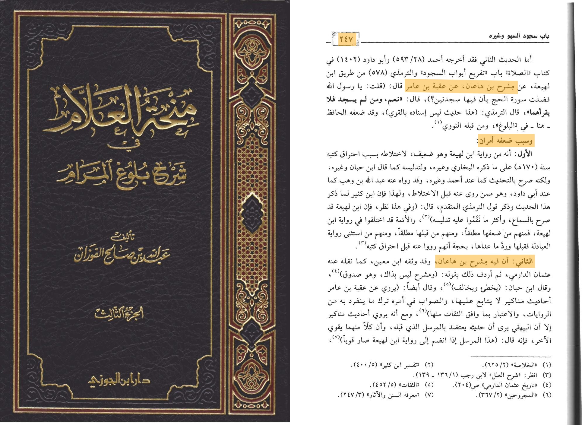 عن مِشرح بن هاعان، عن عقبة بن عامر.. وسبب ضعفه أمران:…الثاني: أن فيه مِشرح بن هاعان،