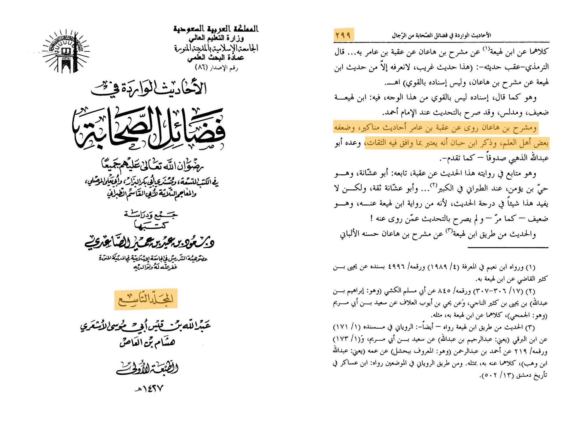 ~al-Ahadith al-Wardah fee Fadhail al-Sahabah vol 9:299