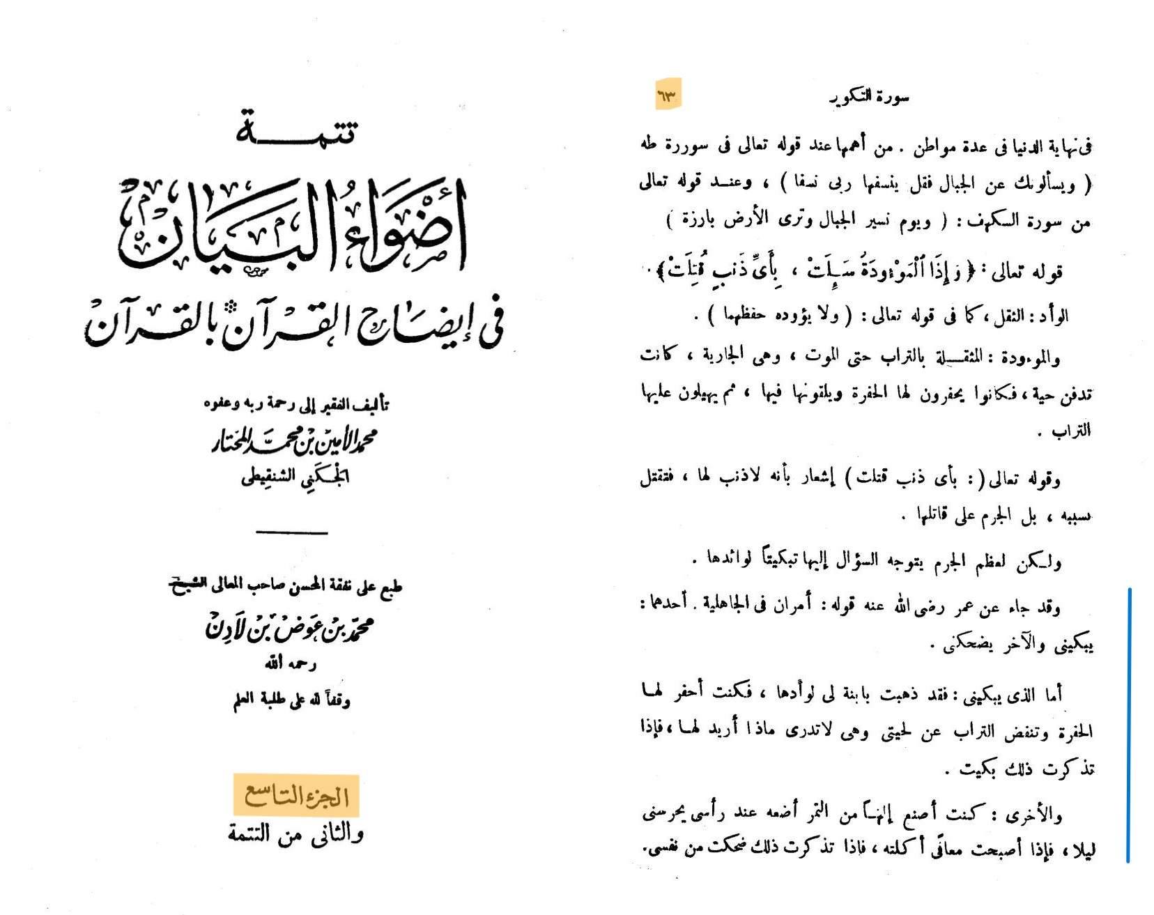 ~Adwa’ al-Bayan fee Idah’ al-Qur’an bil-Qur’an vol 9:63