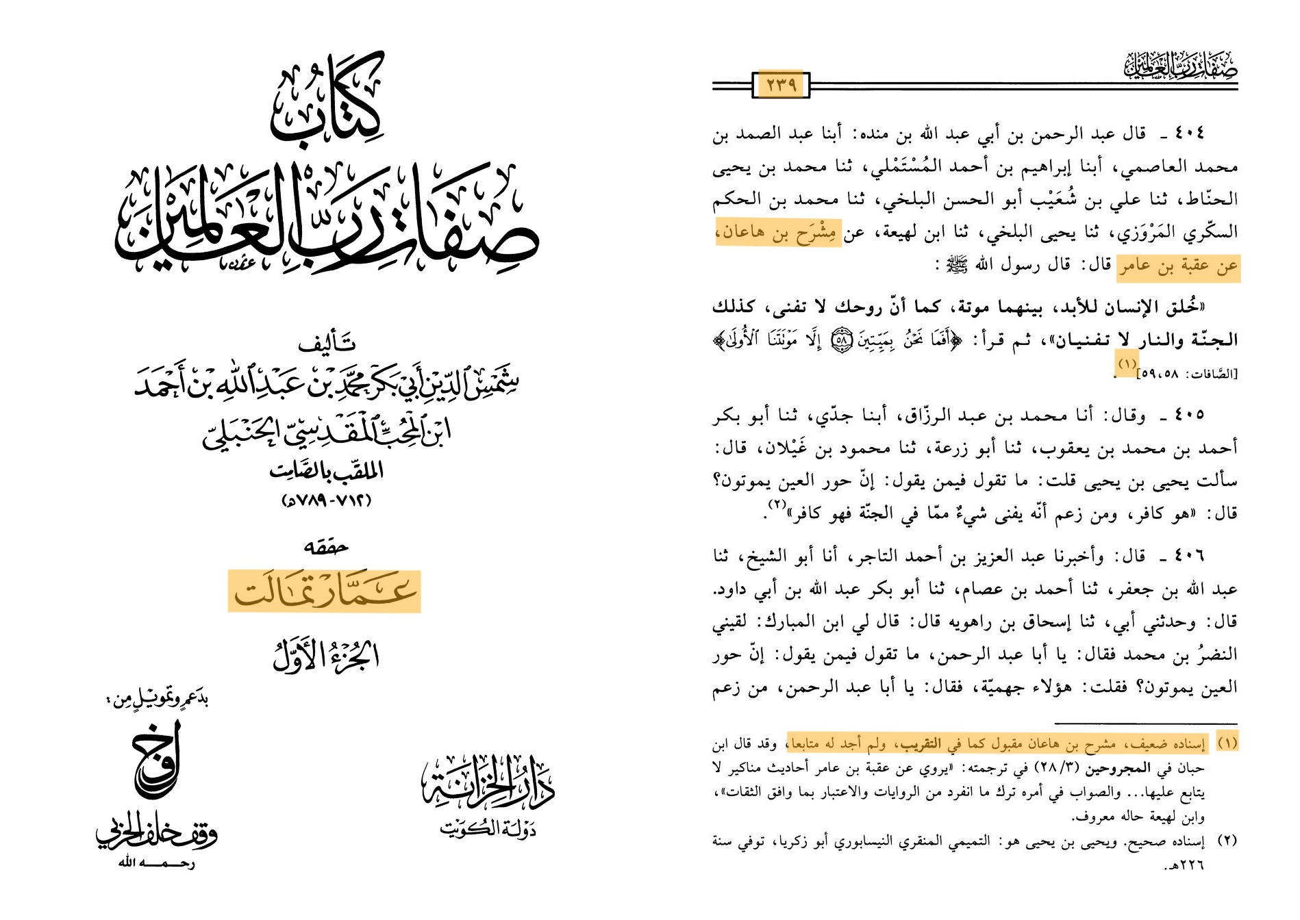 1) Ibn Qudamah al-Maqdisi mentioned :