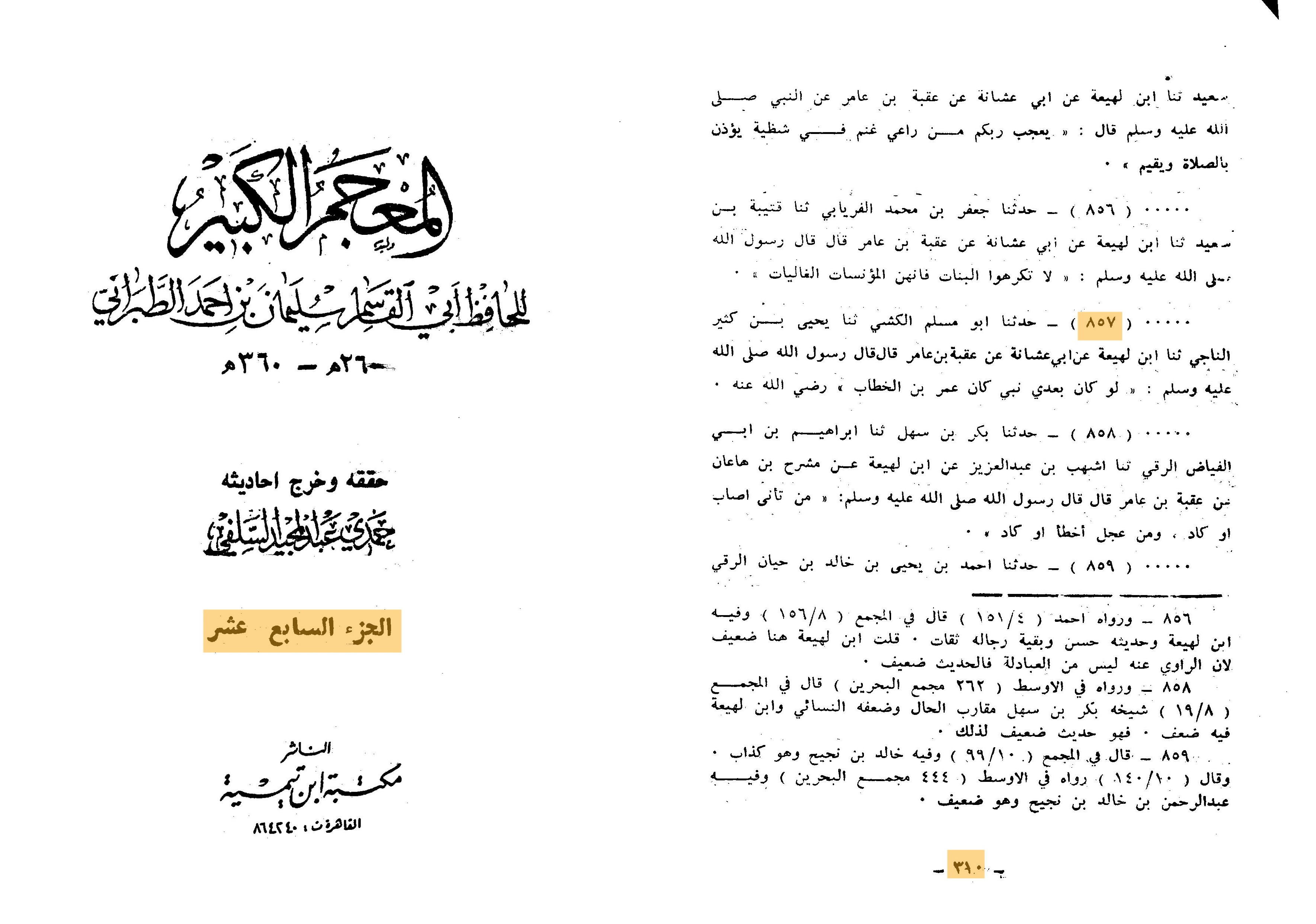 Mishrah Ibn Ha’an narrated this Marfoo’ Hadith on the authority of Uqabah Ibn Aamir. I say this Sanad is Hasan. All of its narrators are Thiqah, while there are some discussions about Mishrah, but that doesn’t fall his narrations below the level of Hasan.