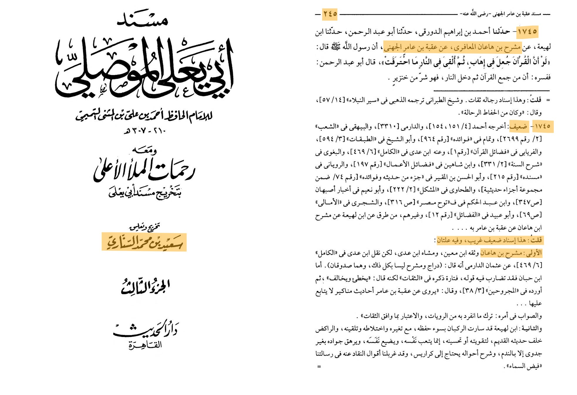 Mishrah Ibn Ha’an reported some isolated and problematic narrations from Uqbah ibn Amir. Therefore, the correct methodology is to remove the reports that he narrates alone and accept only those that are supported by other reliable narrators.